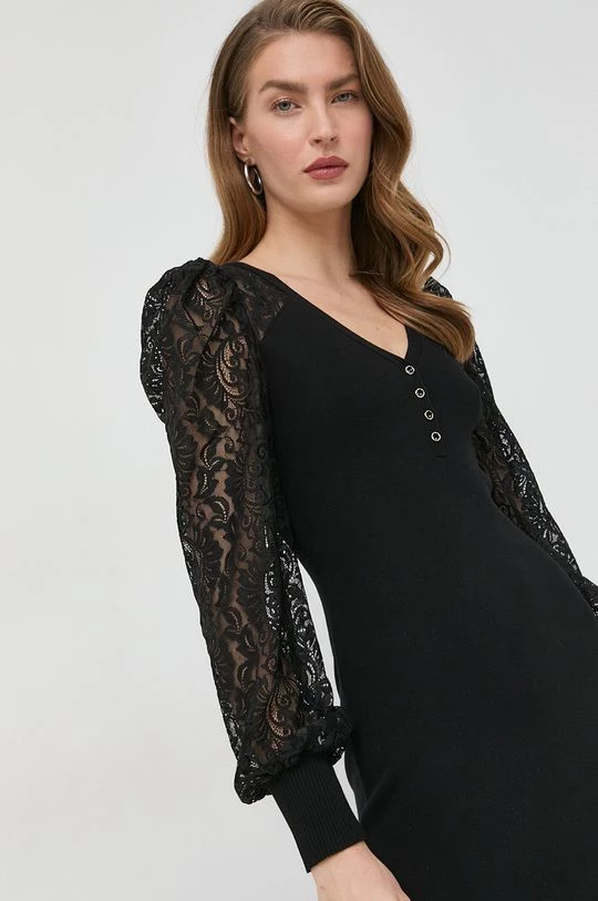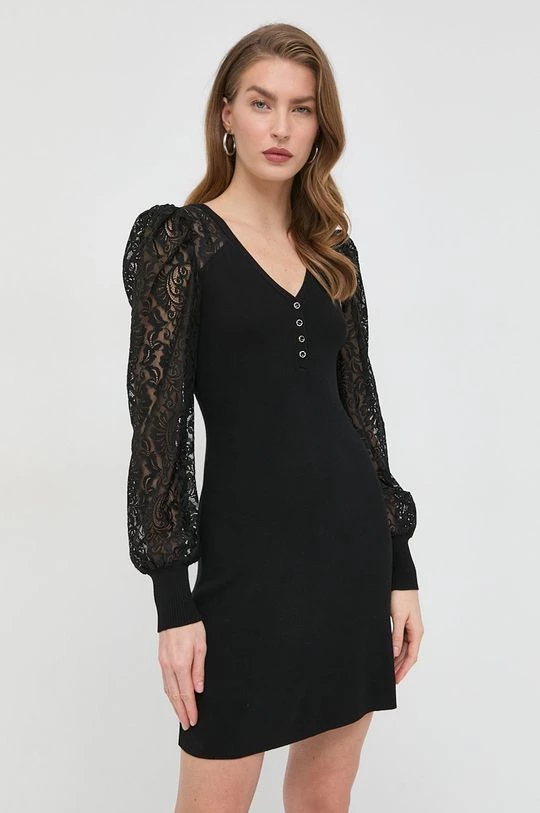 Φόρεμα από τη συλλογή Morgan. Ανοιχτό μοντέλο από συνδυασμοί δύο διαφορετικών υφασμάτων.
