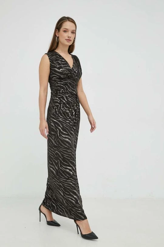 Φόρεμα από τη συλλογή Morgan. Ίσιο μοντέλο από ύφασμα με σχέδια.