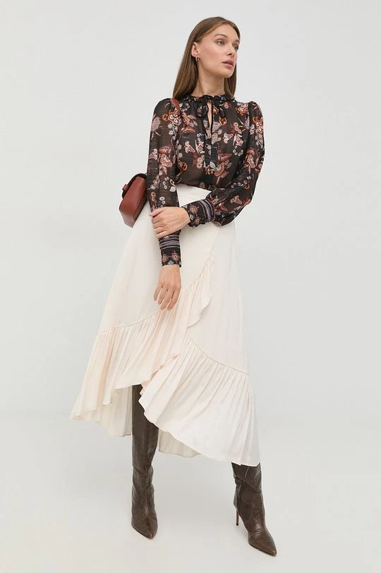 Φούστα από τη συλλογή Morgan. Model o που απλώνεται προς τα έξω τμήμα, από από λείο ύφασμα. Ύφασμα εξαιρετικά ευχάριστο στην αφή.