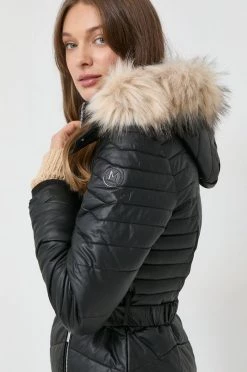 – Κουκούλα με μη αποσπώμενη επένδυση ψεύτικης γούνας.