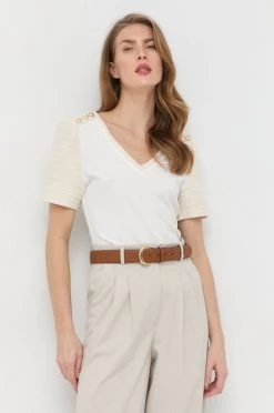 Μπλουζάκι από τη συλλογή Morgan. Μοντέλο από συνδυασμό πλεκτού και υφάσματος.