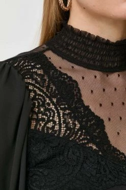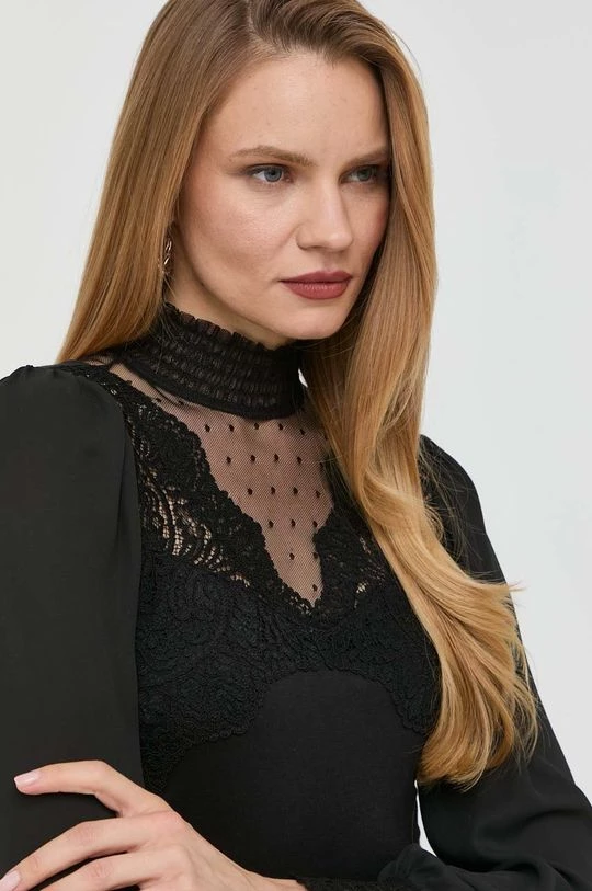 Μπλουζα από τη συλλογή Morgan. Μοντέλο από συνδυασμοί δύο διαφορετικών υφασμάτων. Παρέχει όρθιο γιακά.