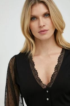 Μπλουζα από τη συλλογή Morgan. Μοντέλο από συνδυασμοί δύο διαφορετικών υφασμάτων. Παρέχει μυτερό ντεκολτέ.