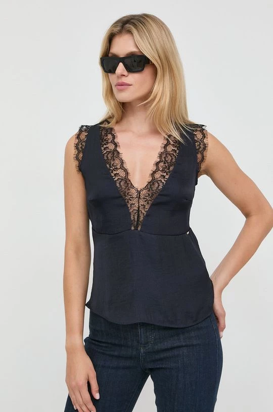 Μπλουζα από τη συλλογή Morgan. Μοντέλο από ύφασμα με ένθετα από δαντέλα. Παρέχει μυτερό ντεκολτέ.